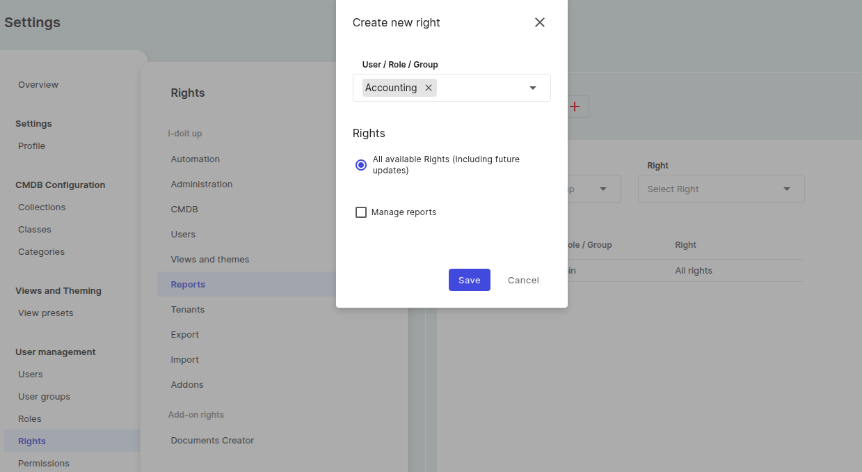 Addition: Configure report rights#